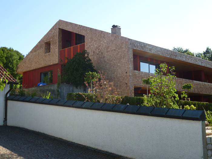 Tradition trifft Moderne! Dieses Haus in Cham ist mit einer Lärchenschindelfassade versehen.