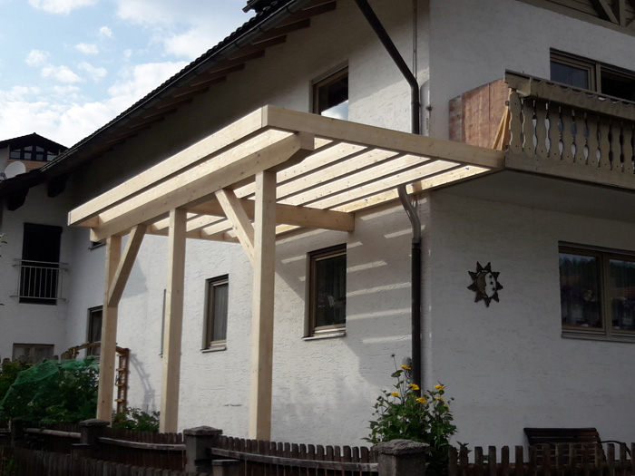 Terrassenunterbau aus Leimholz in den ersten Stock